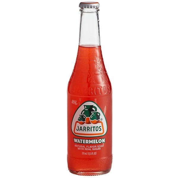 Jarritos Watermelon is a type of Mexican soda that has a sweet and refreshing watermelon flavor. It has a bright pink color and is carbonated. It is made with natural flavors and real sugar, and is free of caffeine and artificial preservatives. It's a popular drink in Mexico and has become increasingly popular in other countries as well.