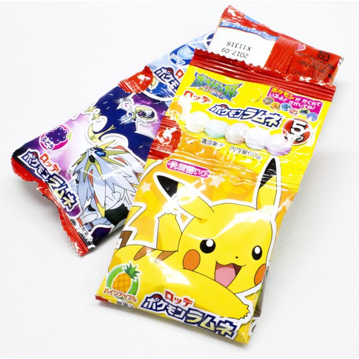 🎮 Lotte Pokémon Ramune Candy – 5 Pack (60g, Assorted Designs) brings the delightful fizz of traditional Japanese ramune soda to a fruity candy form.